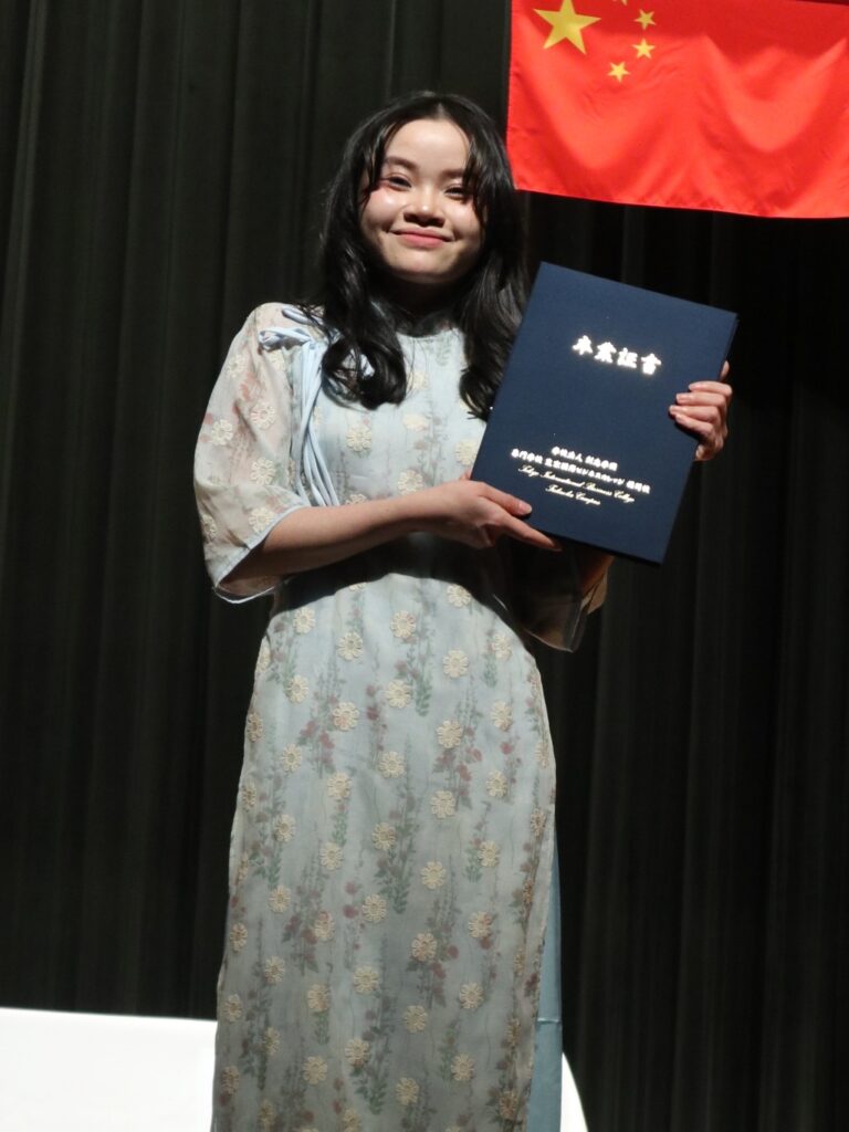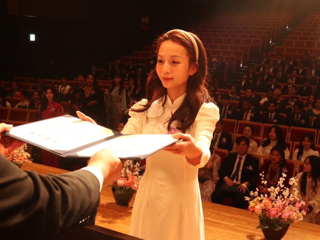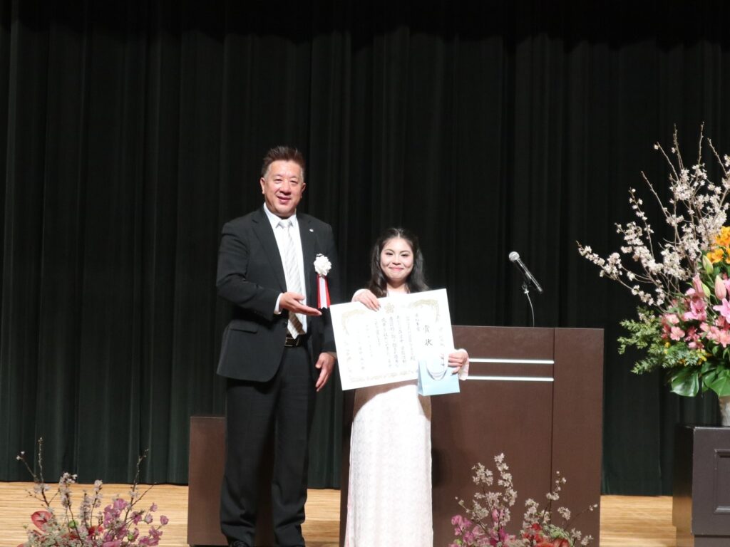 本校の最高の栄誉である福岡県知事賞には国際貿易コースNGUYEN HUONG GIANGさんが選ばれました。