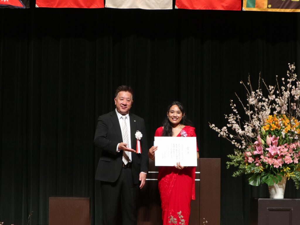 福岡県専修学校各種学校協会協会長賞には国際貿易コースのTAMANG SIMRANさん